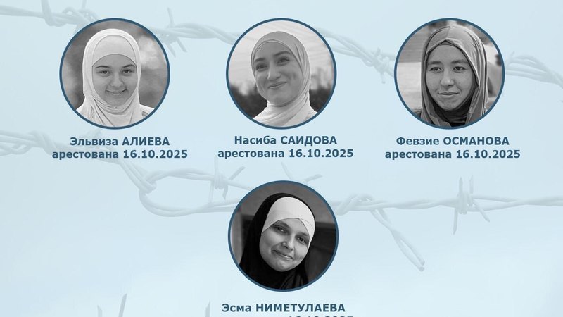 15 октября после обысков в Севастопольском и Бахчисарайском районах Крыма задержали четырех крымских татарок: 39-летнюю Эсму Ниметулаеву, 20-летнюю Эльвизу Алиеву, 18-летнюю Насибу Саидову и 21-летнюю Февзие Османову.
